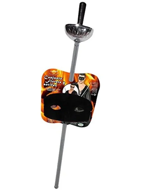Beinhaltet eine schwarze Maske und ein silbernes Florett von 63cm Länge.