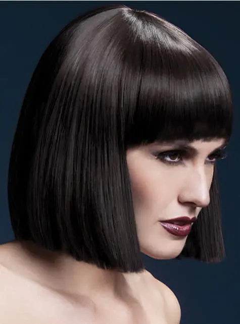 Besteht aus einer 30 cm langen, glatten Perücke im Bobschnitt mit geradem Pony in Kastanienbraun.